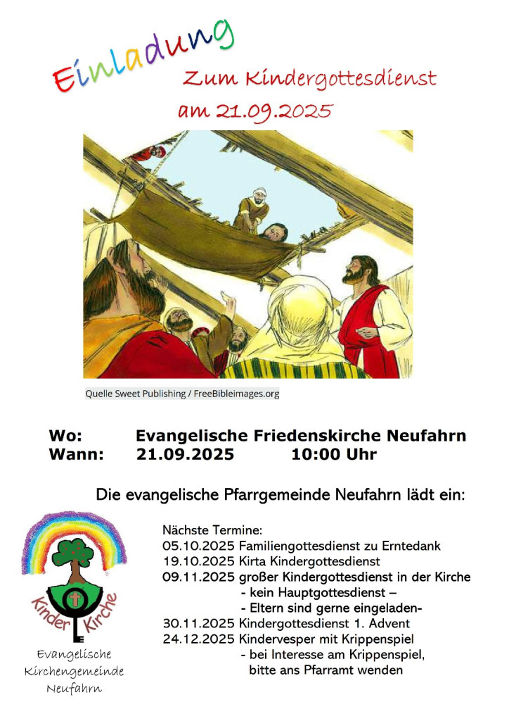 Sonntag, 19.10.25, 10.00 Uhr Kirta-Kindergottesdienst